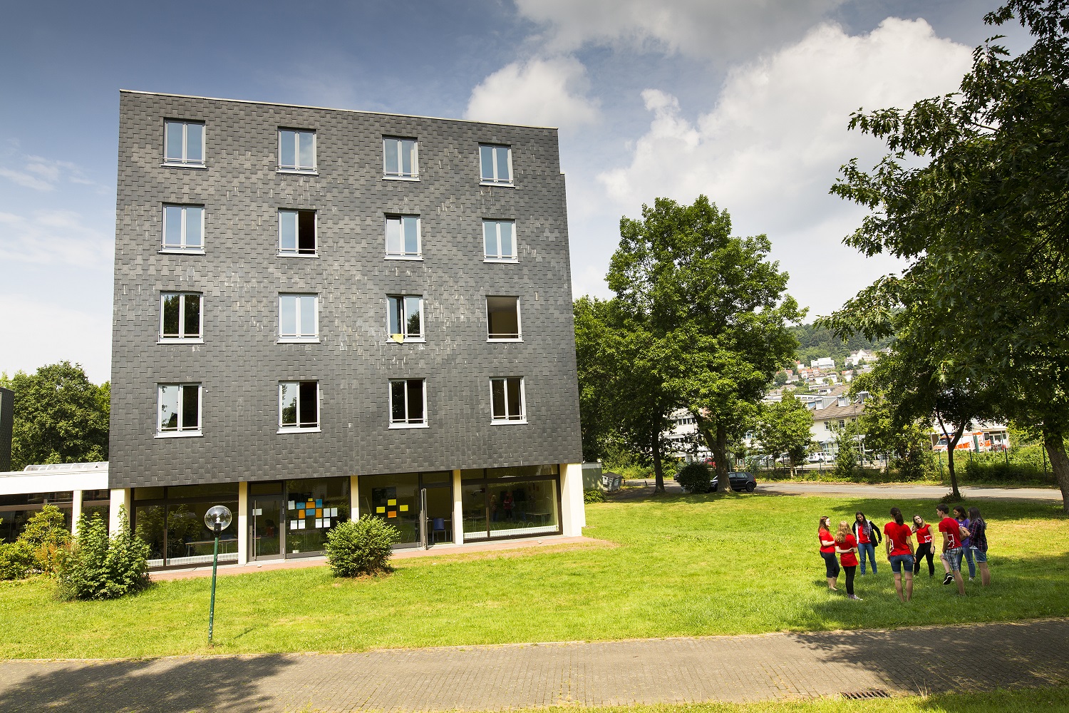 Alpadia Frankfurt-Lahntal’a kaydolan öğrenciler, sınıfları ve yemekhaneleri ile aynı binada bulunan, dört kişilik yurt odalarında konaklarlar. Aydınlık ve modern odalar, öğrencilerin oda arkadaşları ile paylaşacakları bir özel banyoyu da içeriyor. Yurt içerisinde birçok ortak alan da bulunuyor.